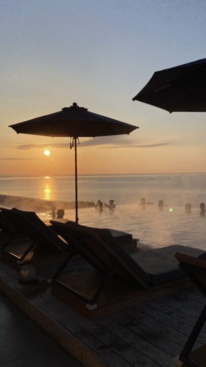 ✔ 朝はプールから朝日を眺めて
